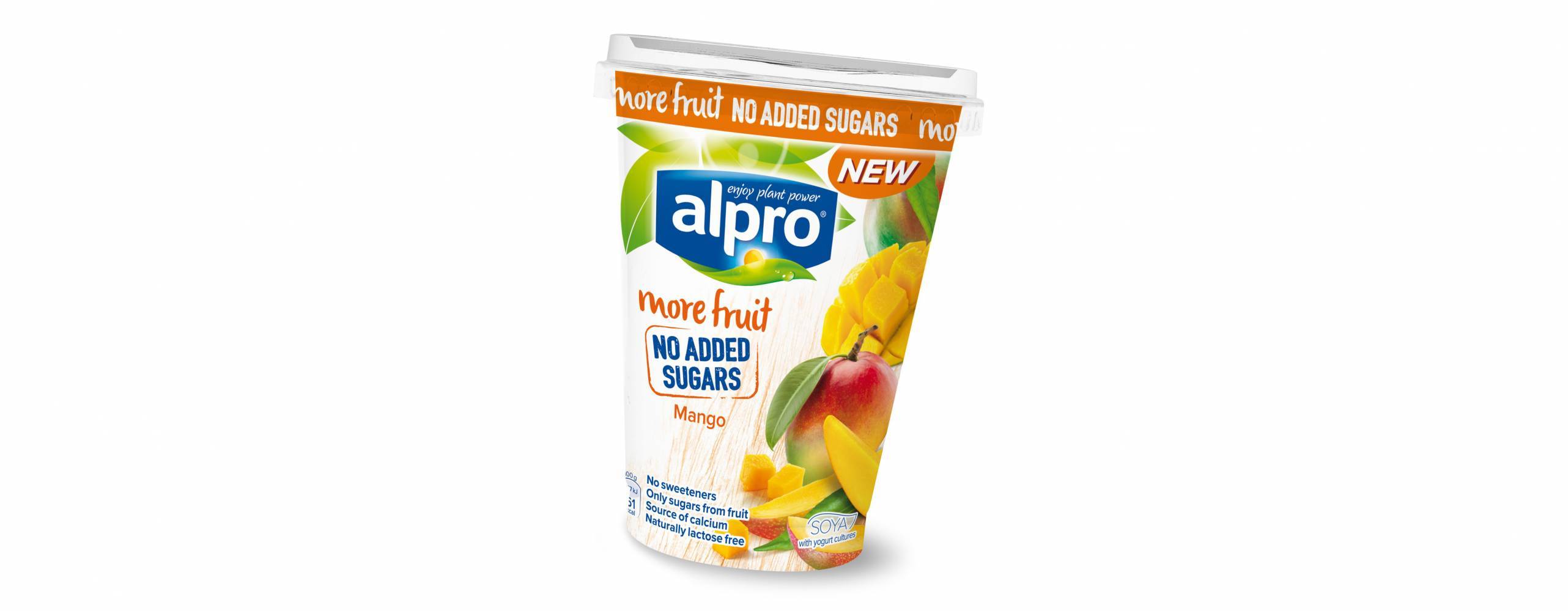 Alpro More Fruit No Added är en nyhet i Alpros utbud av växtbaserade alternativ till yoghurt, helt utan tillsatt socker och full av naturlig fruktig smak. Det söta kommer från de naturliga sockerarterna som finns i vår läckra mango.