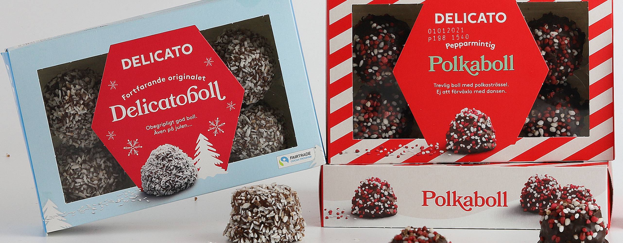 Polkabollen säljs i 6-pack och finns tillgänglig på i matbutiker. Delicatoboll 6-pack juldesign finns i begränsad upplaga i utvalda butiker från vecka 46.