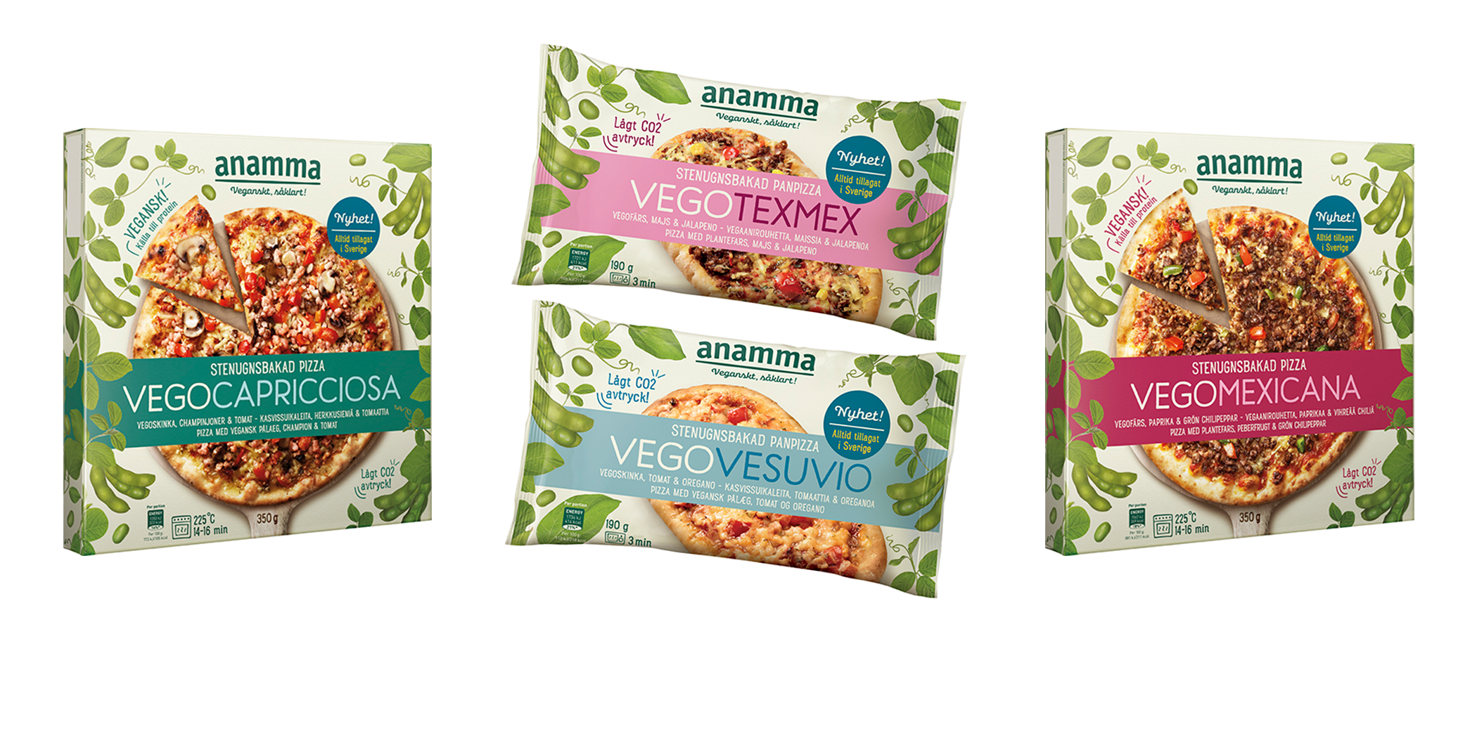Anamma lanserar fyra nya veganska pizzor. Två måltidspizzor i form av VegoCapricciosa och Vegomexicana med stenugnsbakad surdegsbotten samt två minipizzor Vegovesuvio och VegoTexMex med stenugnsbakad panpizza-botten.