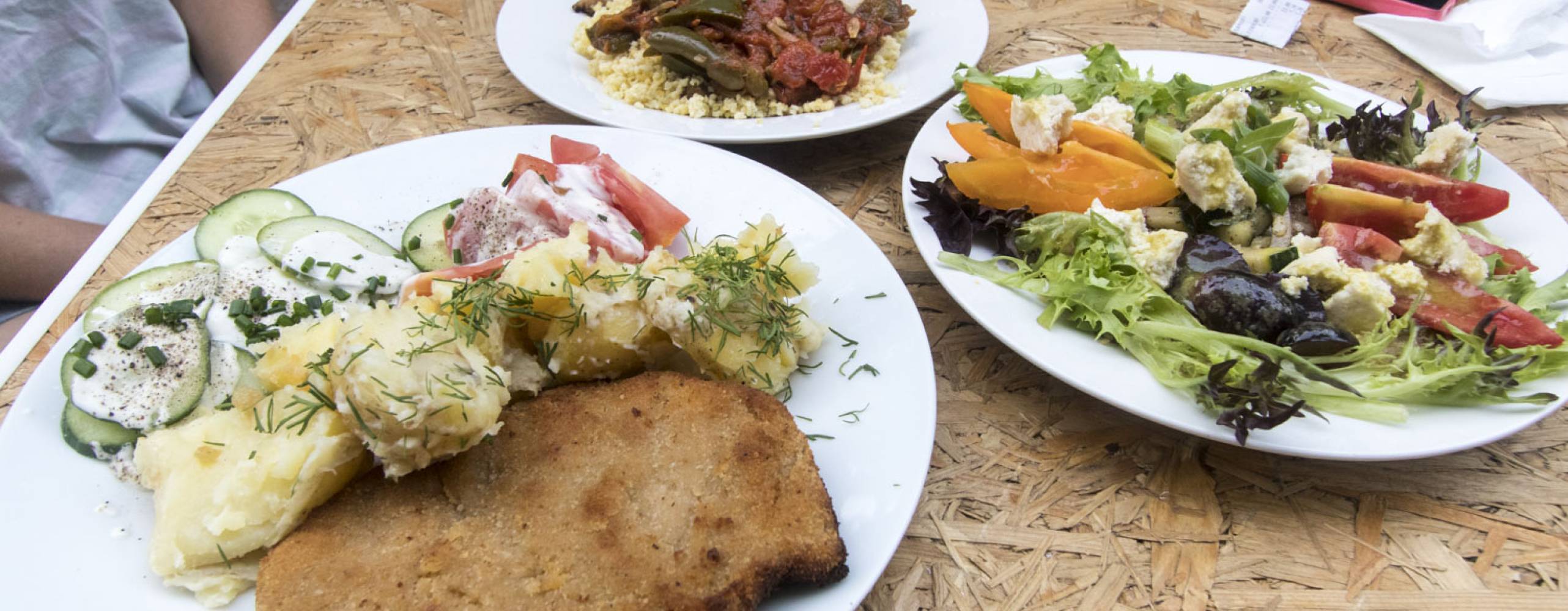 Vege Miasto, en vegansk restaurang som ligger längs en stor gata bara några stopp med spårvagnen från stadens centrum. "Allt smakade ljuvligt! Och enorma serveringar, vi hade verkligen inte behövt soppan. De hade en disk med fantastiskt läskande kakor där en bit som var dubbel storlek mot svensk standard kostade 25kr. Tyvärr var vi för mätta för att testa".
