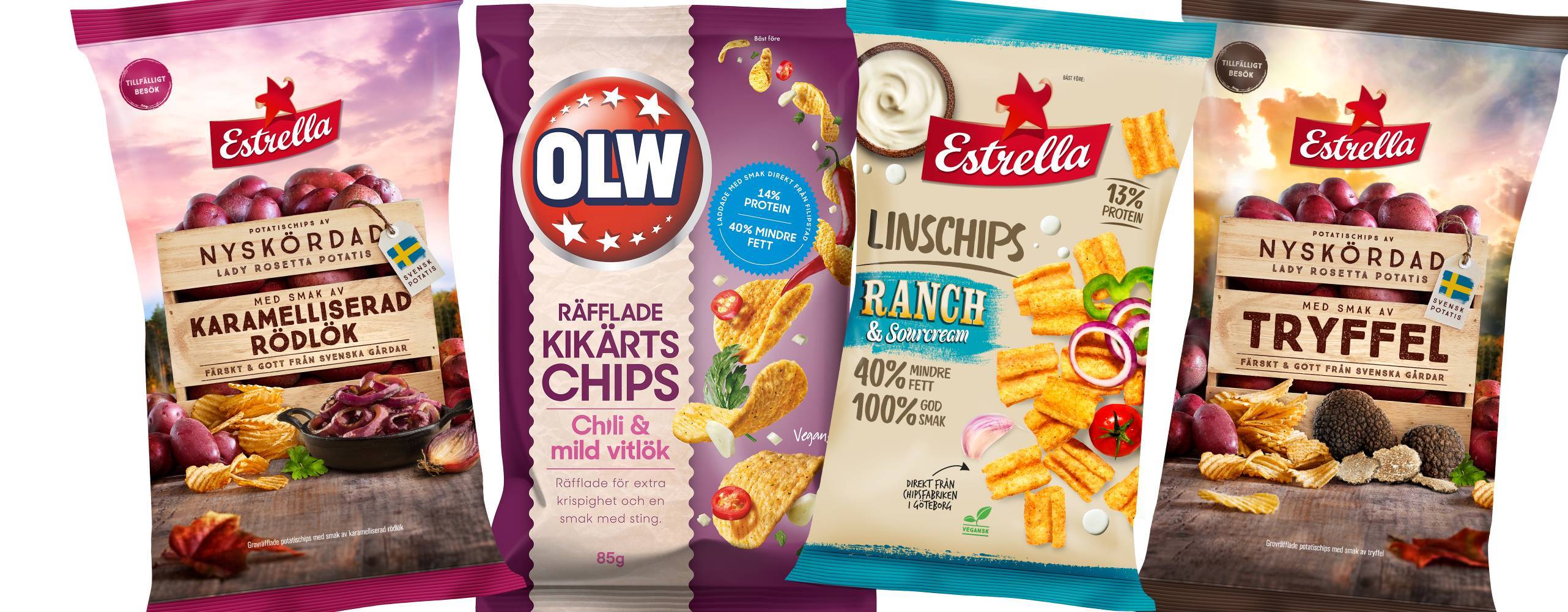 Samtidigt har en ny smak till Estrellas linschips serie utökas med Ranch & sourcream, de har funnits sedan i somras. Och i veckan lanserades två nya smaker i begränsad upplaga  - Tryffel och Karamelliserad rödlök