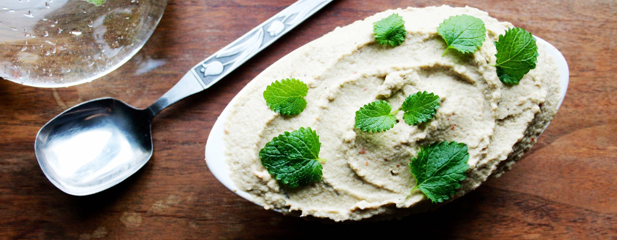 - Ta ut auberginen och gröp ur aubergineköttet med en sked och mixa ihop med övriga ingredienser i en matberedare.