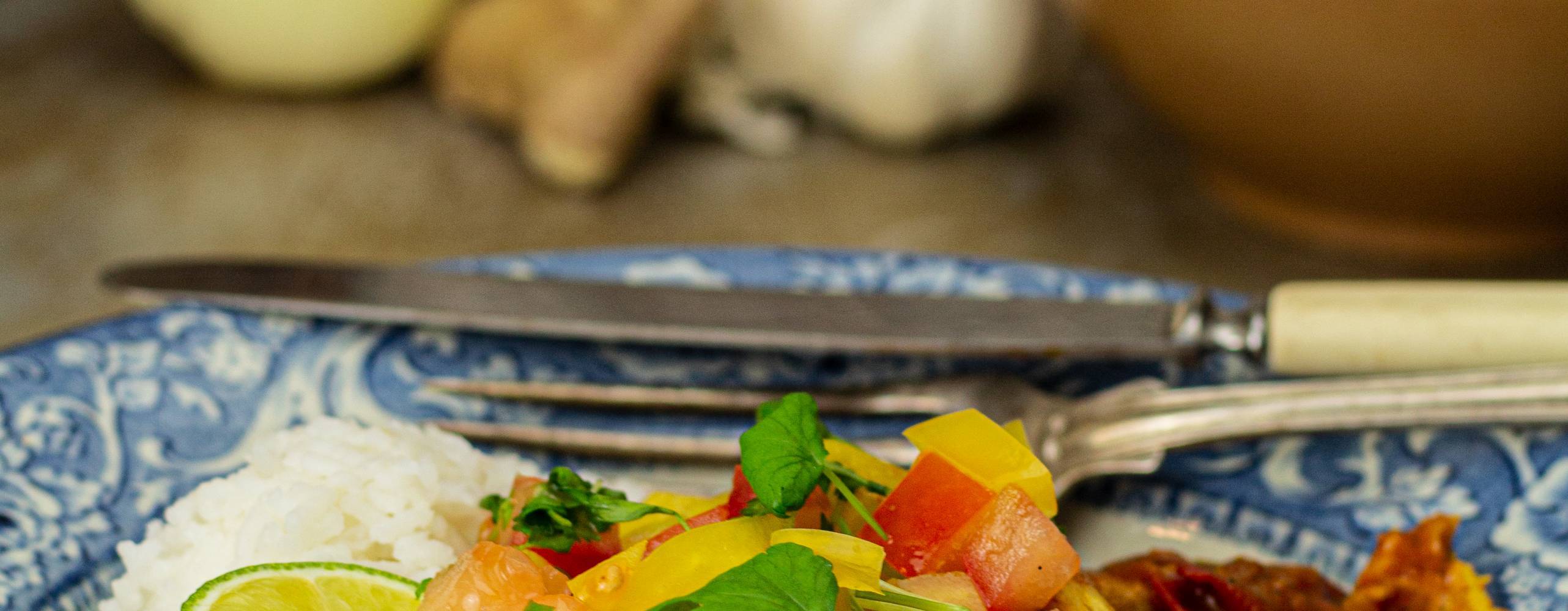 - Tärna under tiden färsk tomat och paprika och hacka koriandern grovt. Blanda ihop detta och toppa grytan med detta vid servering.