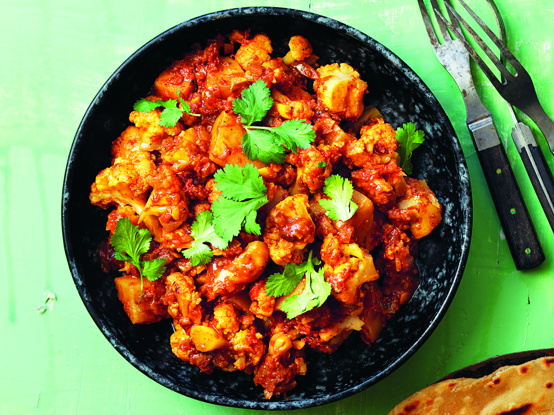 En kryddig vegansk rätt med potatis och blomkål. Många verkar ha fått uppfattningen att aloo gobi är en gryta, men det är faktiskt en ’torr’ grönsaksrätt som äts som den är tillsammans med ris eller roti/chapati, gärna en klick växtbaserad yoghurt också. Receptet kommer från kokboken Green India och var även med i Tidningen Djurens Rätt 3/21.