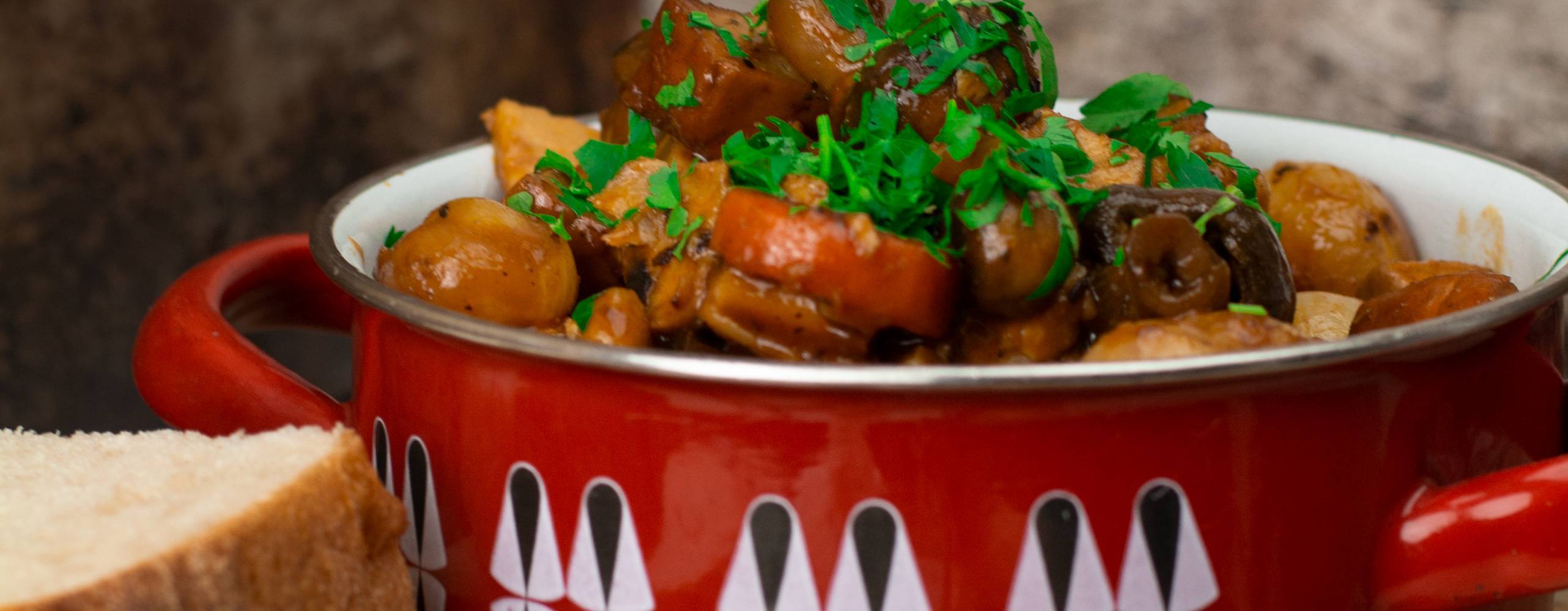Coq au vin är en fransk kycklinggryta men här får du den utan kyckling och helt vegansk! Allt tack vare växtbaserade alternativ till kyckling och kocken Fredrik Kämpenberg som ligger bakom det här fantastiska receptet. Passar utmärkt till en finmiddag eller när du bara vill imponera med din veganska matlagning!