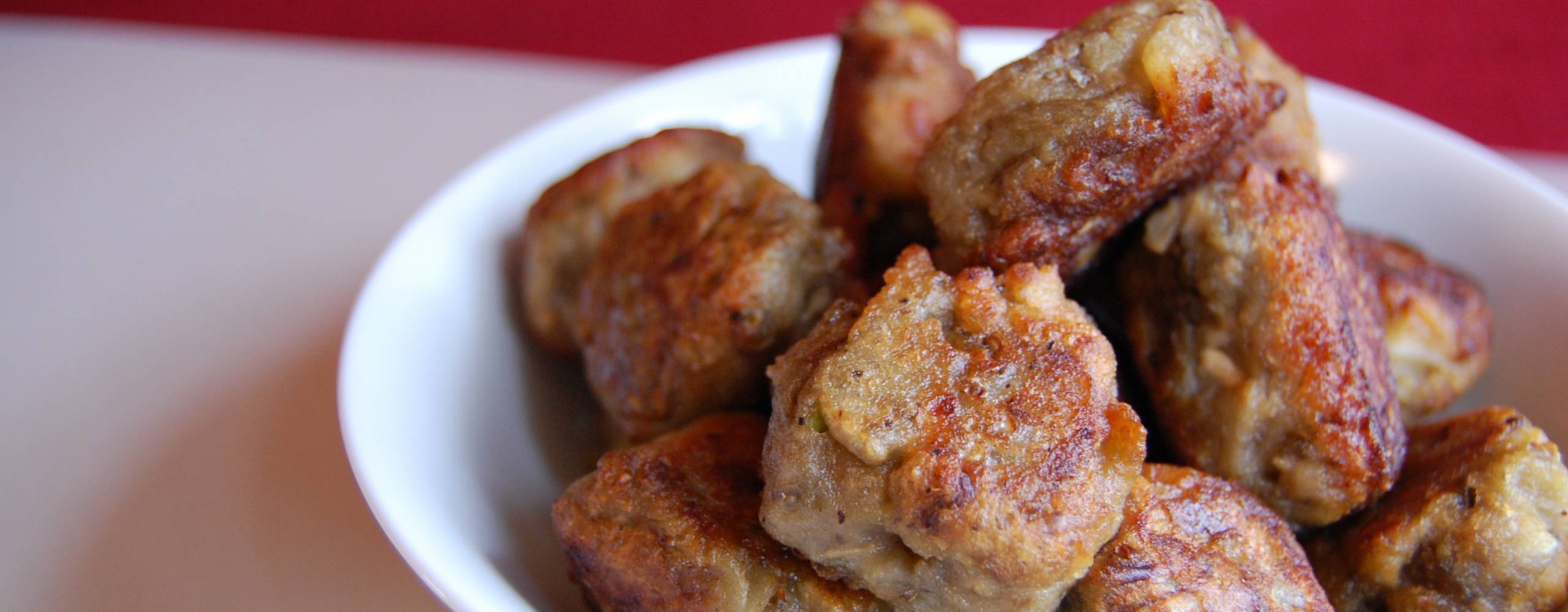 - Blanda sedan ner mjölet, blir smeten för lös och kladdig så ta lite mer. Låt sedan stå och svälla en stund. Forma bollar, ta hjälp av en sked, rulla dem gärna i ströbröd och stek på medelvärme i ca 4-5 minuter.