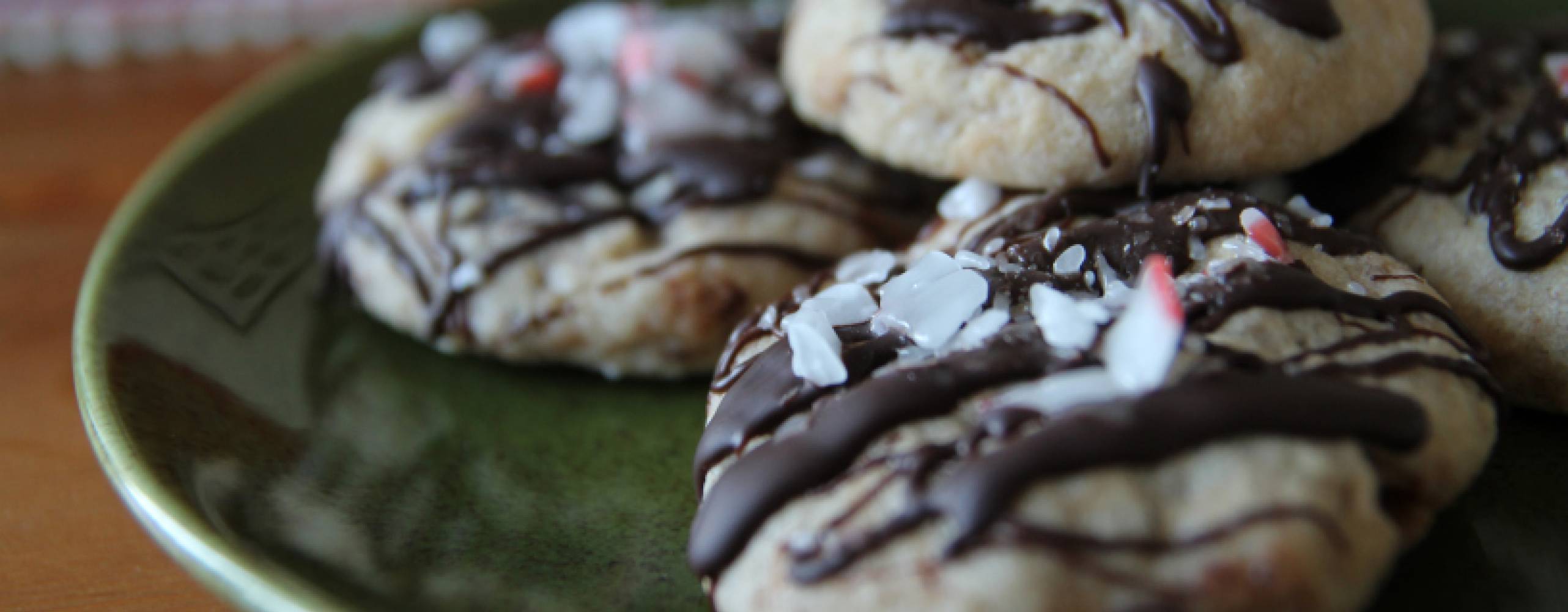 Under tiden de svalnar så smält choklad i vattenbad och krossa polkagrisar exempelvis med en flaska glögg. Ringla sedan choklad över kakorna och strö polka över så att det fastnar i chokladen. Ställ i kylen en stund så chokladen stelnar. ÄT!
