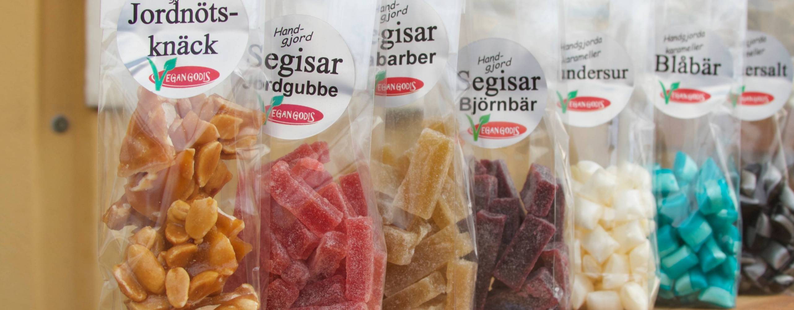 Har ni testat Vegangodis - alltså som i namnet Vegangodis?! Det är handgjort godis med icke-animaliska råvaror. Vad sägs om Jordnötsknäck, Blåbärs karameller eller Segisar av björnbär?