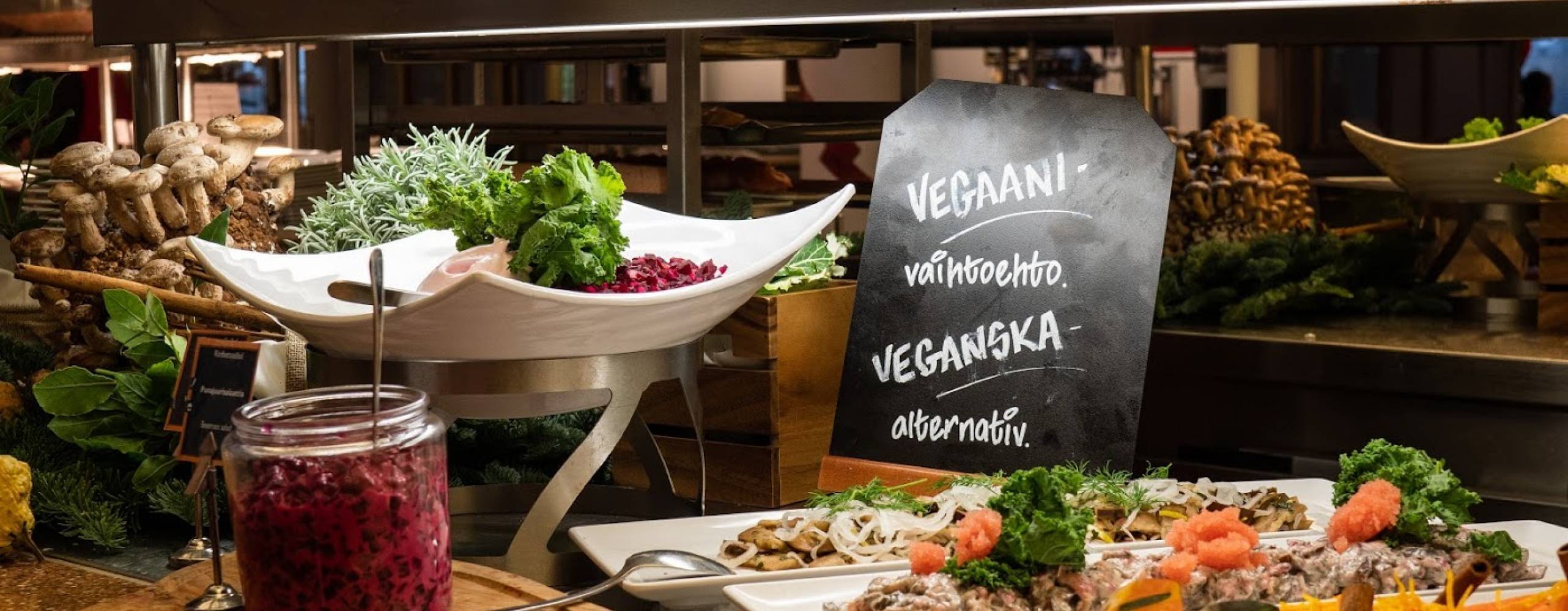 Det konventionella julbordet är kvar men ett digert urval av helt växtbaserade rätter som varken innehåller mjölkprodukter, ägg eller ost tar större plats i år. Bland delikatesserna återfinns exempelvis vegansk skärgårdssill, sirapsstekt kålrot med krispig grönkål och vegansk tranbärskaka.