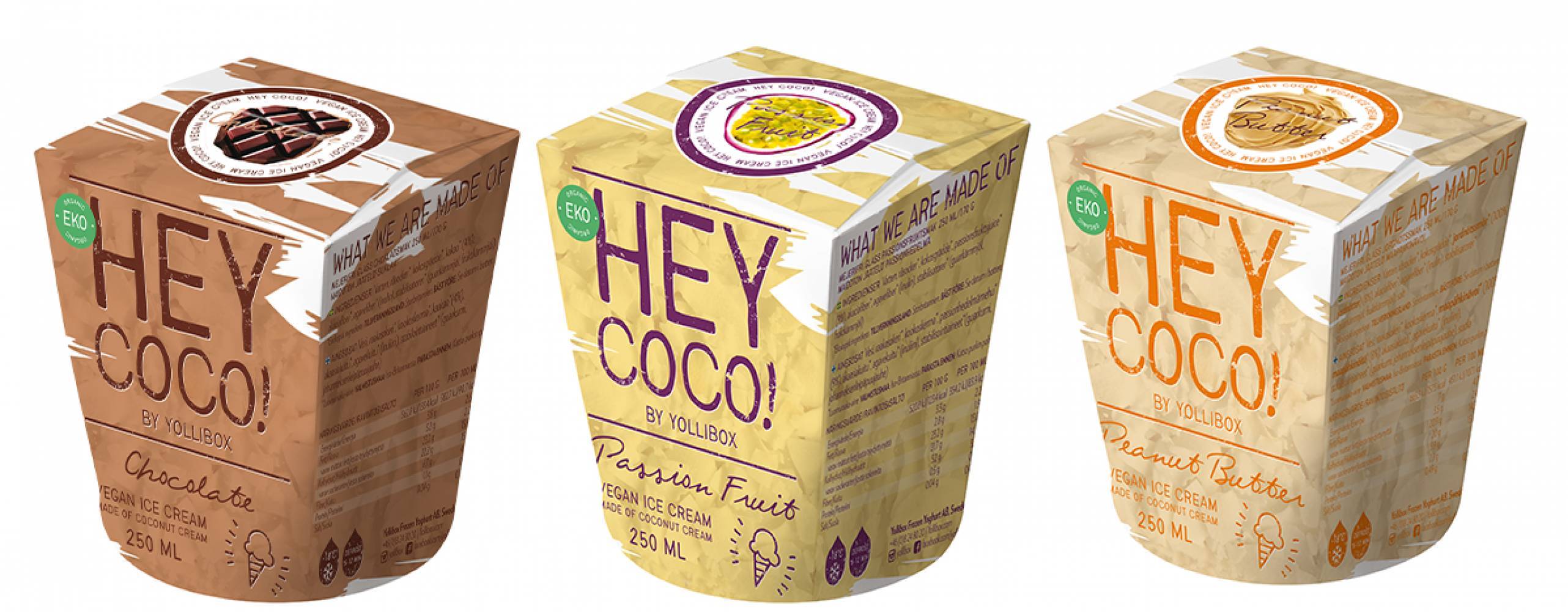 I mars introducerar Yollibox den nya veganska produktlinjen HEY COCO!- En ekologisk växtbaserad glass med en bas av kokosgrädde. Initialt lanseras tre smaker: Passionsfrukt, Choklad och Jordnötssmör. Samtliga är fria från gluten, palmolja, laktos och soja. Passionsfrukt och Choklad är även fria från nötter.